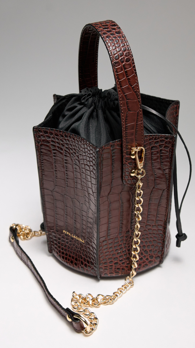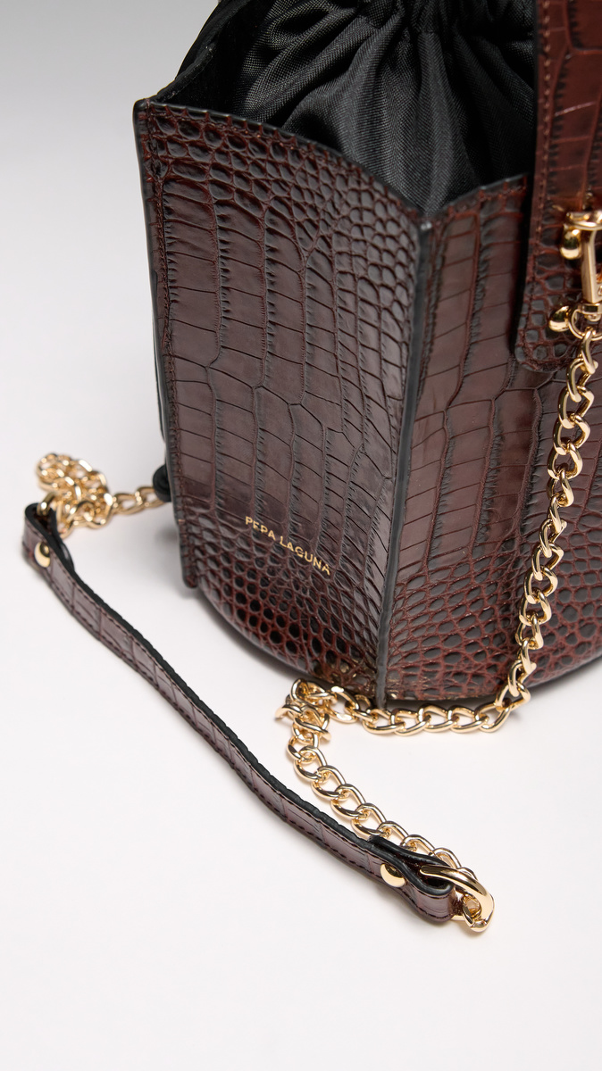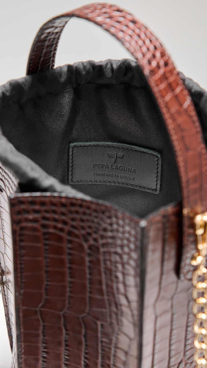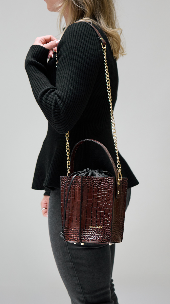 El bolso Freya es una declaración de elegancia para acompañar momentos inolvidables. Su exquisita piel con grabado efecto cocodrilo y su diseño estructurado lo convierten en el complemento perfecto para lucir en eventos especiales. Sofisticado y femenino, puede llevarse en la mano o al hombro gracias a su doble asa. Cada pieza ha sido cuidadosamente fabricada a mano, en Ubrique (España) por expertos artesanos, en piel de la más alta calidad y bajo procesos tradicionales.