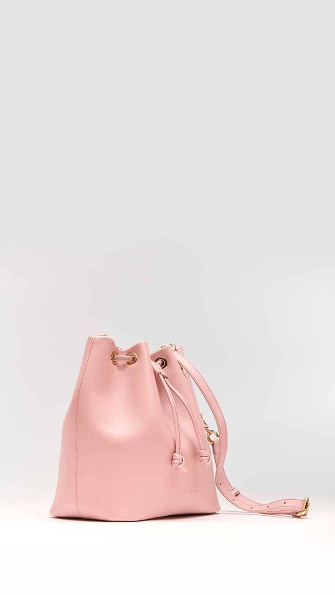 Su interior, forrado en algodón 100%, cuenta con dos bolsillos prácticos: uno tipo sobre y otro con cierre de cremallera. El cierre de fruncido con estrangulador asegura comodidad y seguridad a la hora de llevar tus esenciales. Sus acabados metálicos en color oro, realzan aún más su estética refinada.