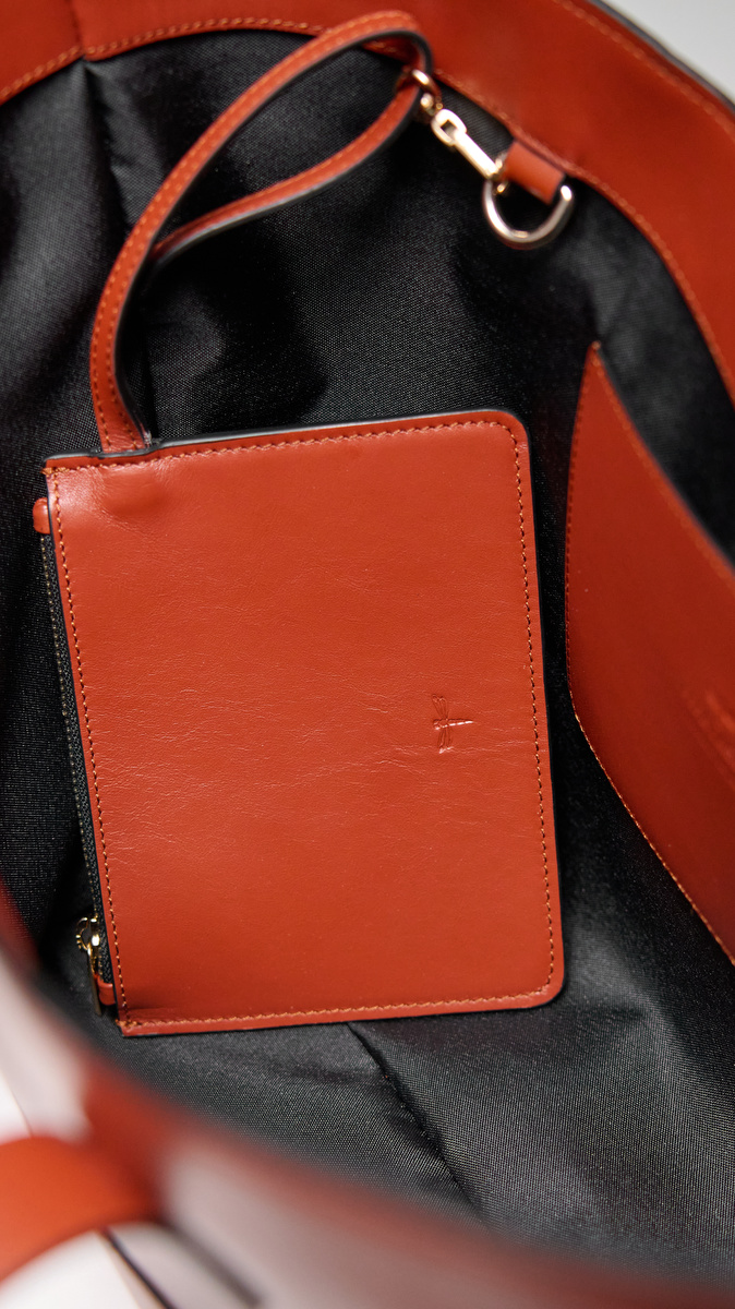 En un sofisticado color habana, este modelo tipo shopper, inspirado en las alas de una libélula, presenta una silueta amplia y depurada, con líneas limpias y una estructura firme pero flexible que se adapta cómodamente al cuerpo. Sus asas largas en piel, resistentes y bien proporcionadas, permiten llevarlo cómodamente al hombro, convirtiéndolo en un aliado perfecto tanto para el día a día como para jornadas más largas.
