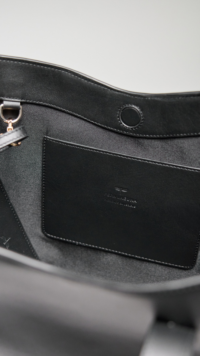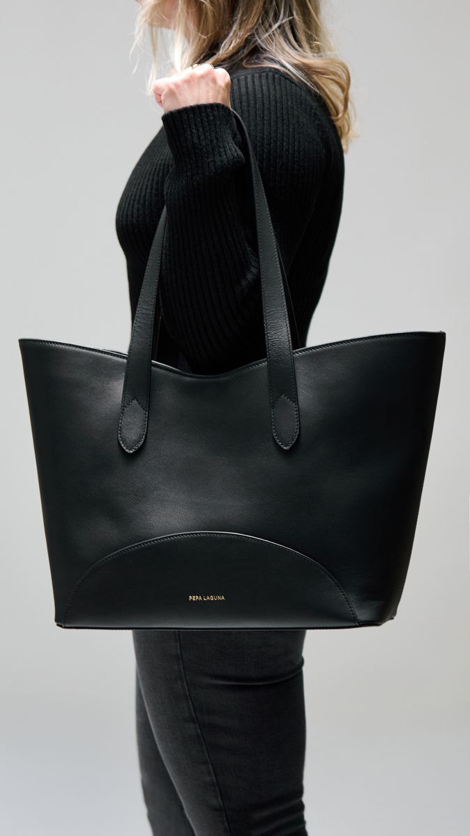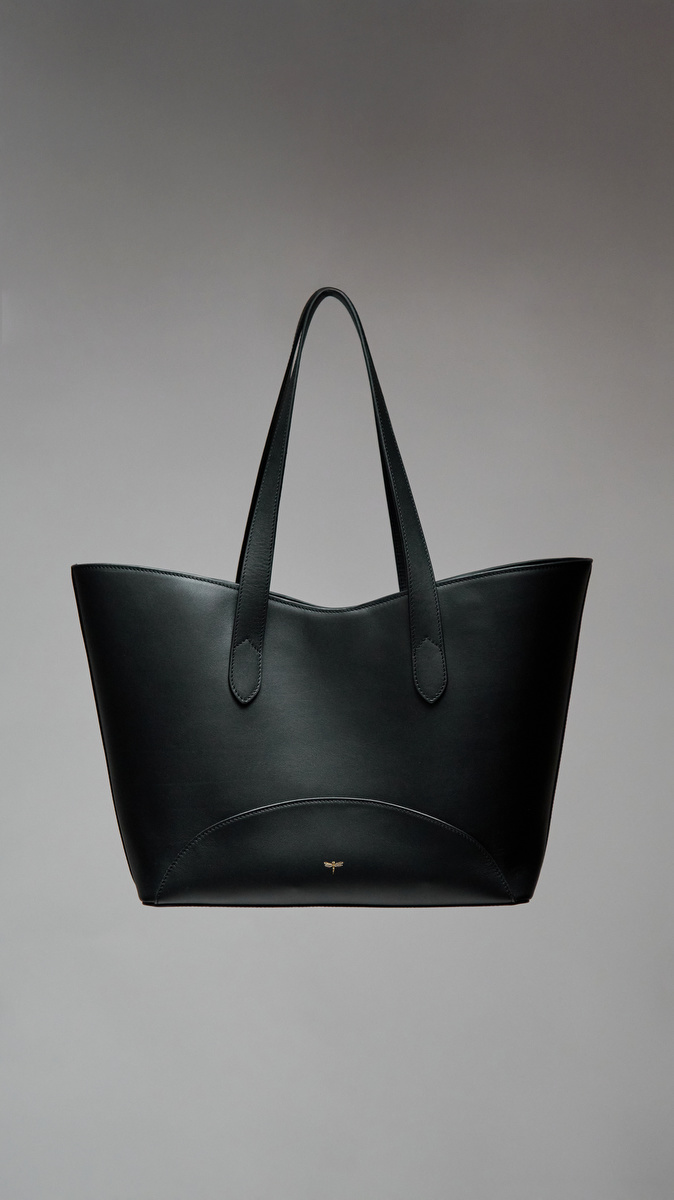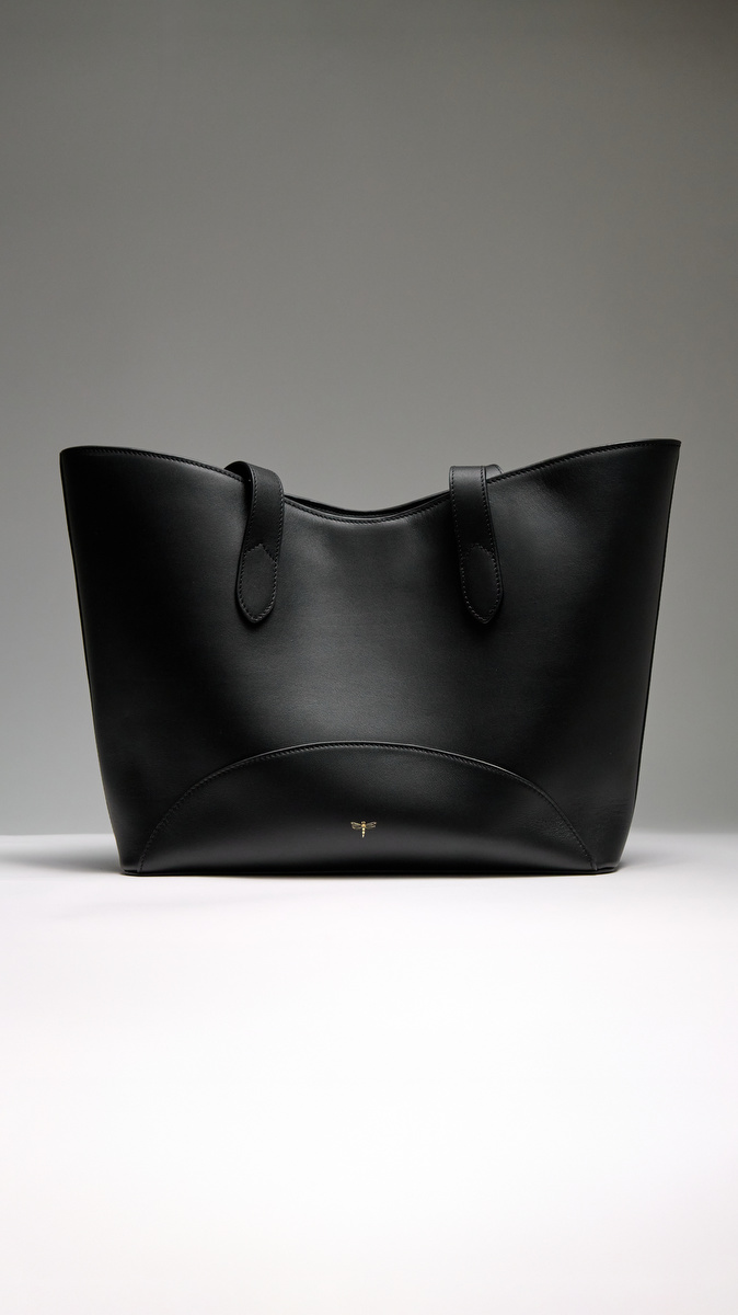 En un sofisticado color negro profundo, este modelo tipo shopper, inspirado en las alas de una libélula, presenta una silueta amplia y depurada, con líneas limpias y una estructura firme pero flexible que se adapta cómodamente al cuerpo. Sus asas largas en piel, resistentes y bien proporcionadas, permiten llevarlo cómodamente al hombro, convirtiéndolo en un aliado perfecto tanto para el día a día como para jornadas más largas.
